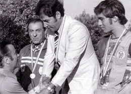 Hugo Dufey (al centro) consagrado campeón del V Campeonato Sudamericano de tiro al vuelo Gloria Meza y su campeón de marido Hugo Dufey Muñoz